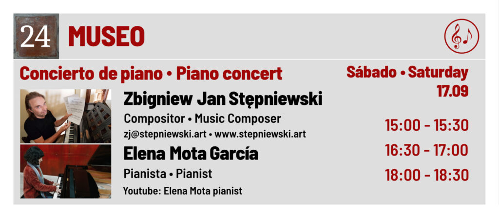 I cordially invite you to the first performance of my piano music played by Elena Mota García, which will take place on September 17th during Cómpeta Artwalk 2022 in The Museo de Artes y Costumbres Populares.